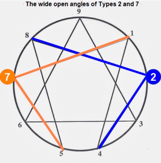 As an illustrative point of comparison, these qualities about 4 and 5 are emphasized further when we again consider the symbolic geometry of Types 2 and 7, the two types with the widest, most open angles on the ennea-symbol.